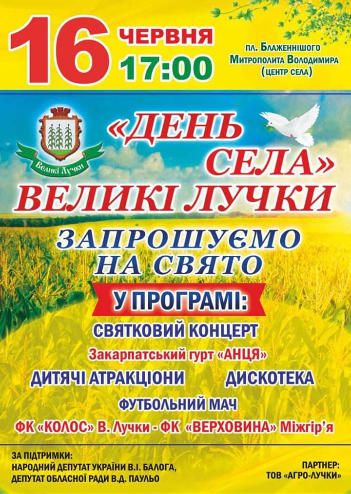 Цієї неділі, 16 червня, о 17:00 на площі Блаженного Митрополита Володимира розпочнеться святкування дня села Великі Лучки