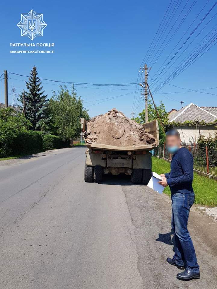 Ужгородські патрульні, спільно з працівниками муніципальної варти, притягнули до відповідальності водія вантажівки, який забруднив проїзну частину, та не мав посвідчення на право керування