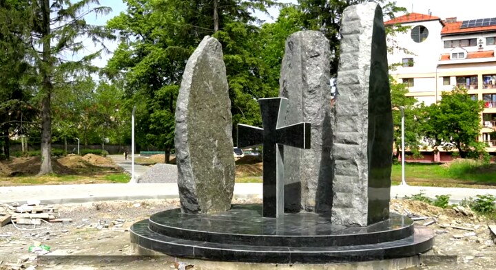 В парку по вулиці Олександра Духновича встановили монумент воїнам-захисникам. Три гранітні стели з хрестом висотою майже 3 метри. Вночі пам ’ятник підсвічується 10 сучасними led-світильниками. На спорудження монументу усім захисникам з міського бюджету виділили понад 1 млн. 300 тисяч гривень, інформує пресслужба Мукачівської міської ради.