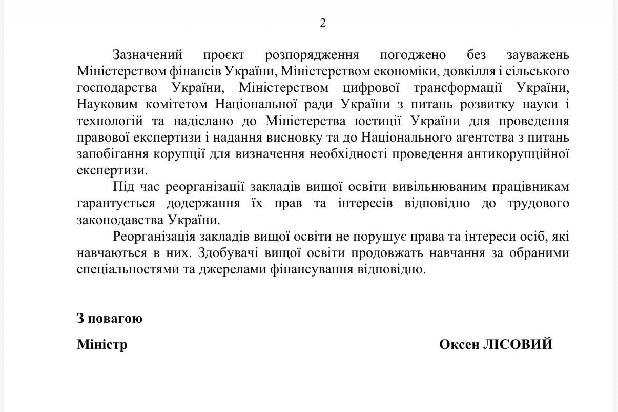 При цьому парламентар підкреслив, що колективи обох закладів вищої освіти мають право відкрито висловлювати свою позицію — підтримувати чи не підтримувати запропоновані зміни.