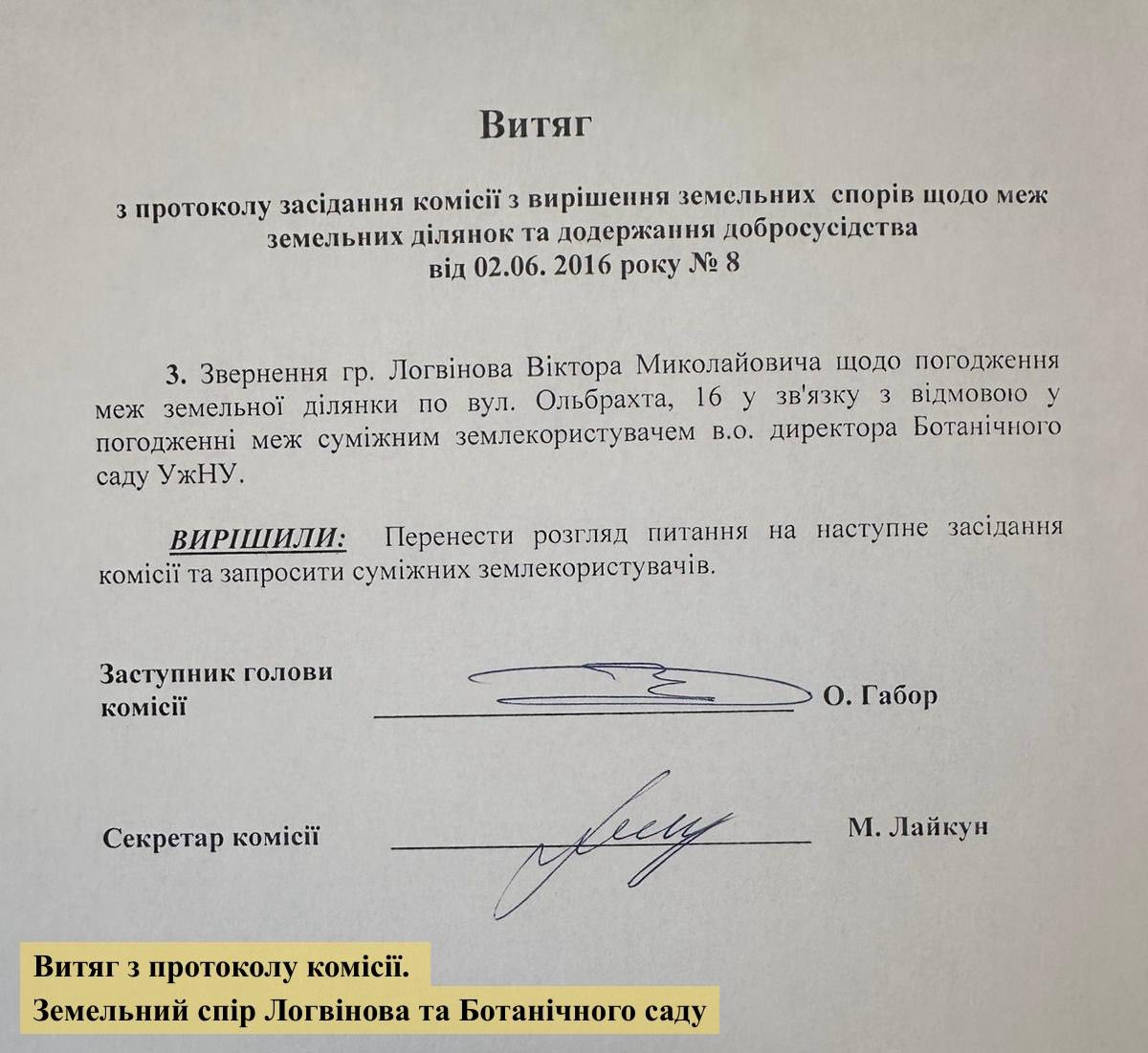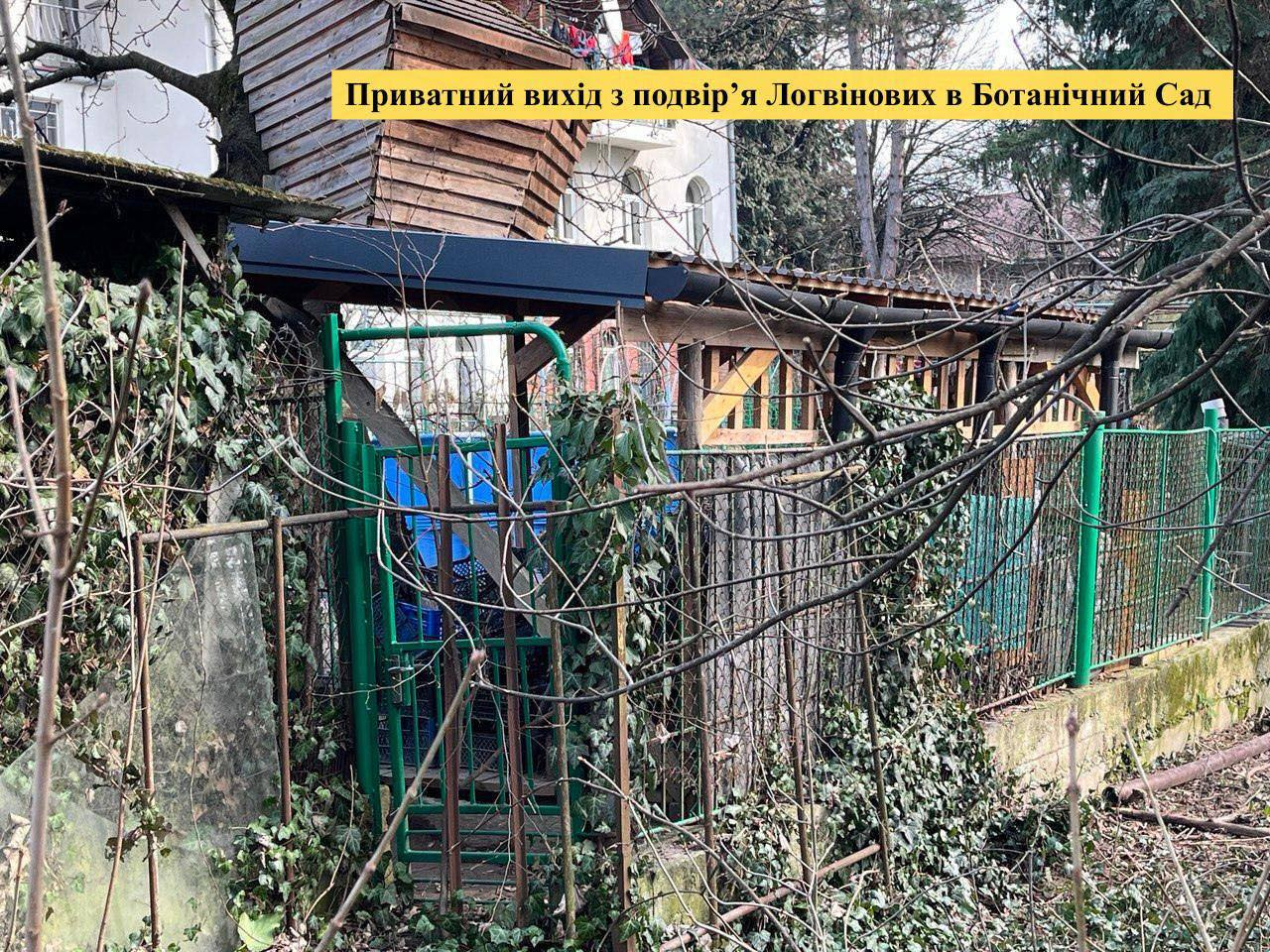 Крім того, у заяві згадується ситуація з облаштуванням приватного виходу з подвір’я будинку до території ботанічного саду. За словами автора, межі земельної ділянки були погоджені без підпису суміжного користувача — ботанічного саду.