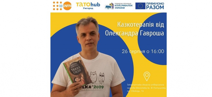Олександр Гаврош – письменник, журналіст, драматург, за творами якого знято український дитячий художній фільм “Іван Сила”. Tatohub та Олександр запрошують на сімейний захід, який дозволить поринути у казковий світ, повідомляє Закарпатська обласна універсальна наукова бібліотека ім. Ф. Потушняка. Місце зустрічі: Закарпатська обласна універсальна наукова бібліотека ім. Ф.Потушняка, пр. Свободи, 16 Проєкт TATOhub в Ужгороді, Хмельницькому, Тернополі реалізується ГО «Клуб рибалок України – Юей Фішинг Клуб» у рамках програми ООН з відновлення та розбудови миру за фінансової підтримки Європейського Союзу та проєкту “Трамплін до рівності”, що імплементується UNFPA Україна у партнерстві…