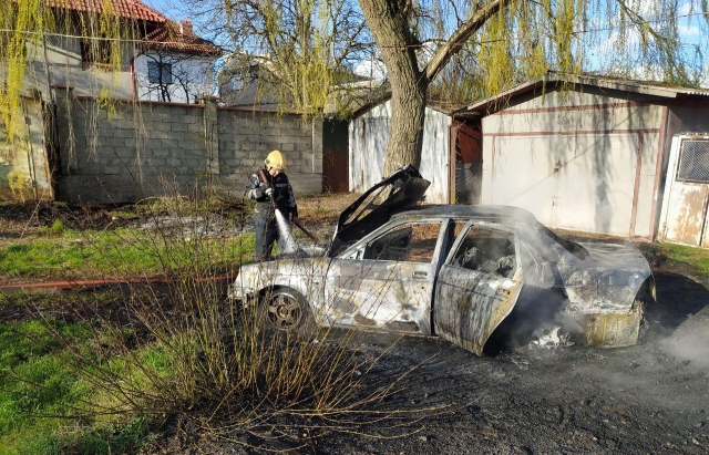 Автомобіль загорівся вчора, 31 березня, на вулиці Мужайській в Берегові На щастя, водій встиг вийти з машини, однак автівку пожежним врятувати не вдалося. Попередньо, причиною пожежі стало загорання електропроводки.